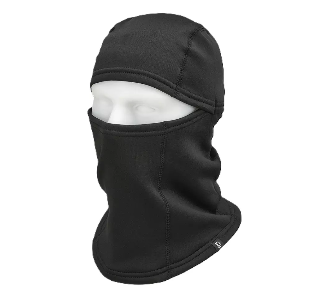 Brandit kypärähuppu, musta. Lämmin, joustava balaclava. Kypärähuppu lämmittää kaulaa ja niskaa, se on joustava ja istuu päähän kuin päähän. Materiaali on sisäpuolelta fleecepintainen ja kuivuu nopeasti.