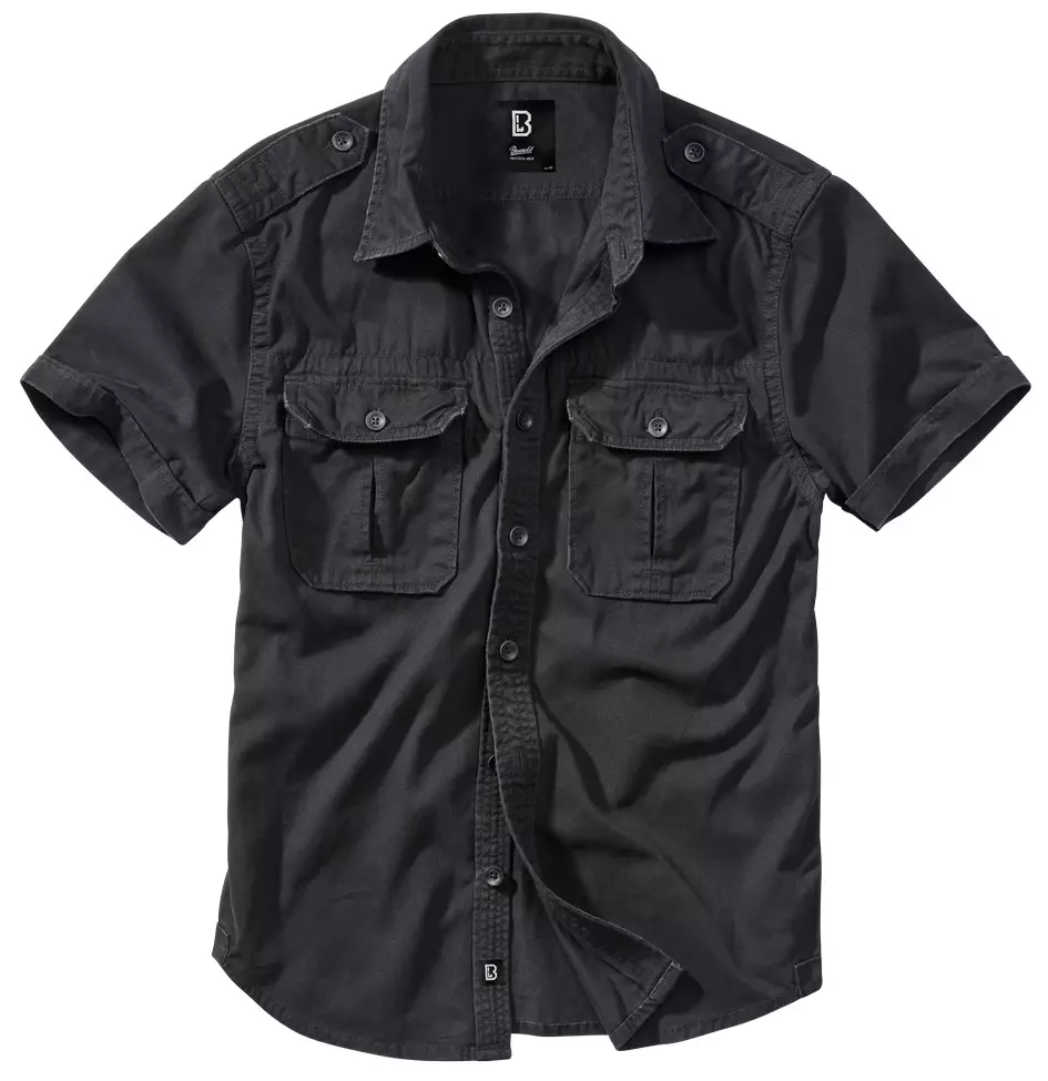 Brandit lyhythihainen kauluspaita, musta. Branditin siisti ja kestävä cargo -tyylinen lyhythihainen kauluspaita. Paita sopii hyvin niin urbaaniin kaupunkiin kuin kesäisille festareille. Tässä puuvillaisessa paidassa on napeilla sulkeutuvat läpälliset rintataskut sekä epoletti (kansanomaisesti sanottuna poletti) paikat olkapäillä. Paita sulkeutuu edestä napeilla.