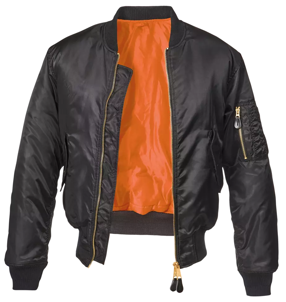 Brandit Pilottitakki MA1, musta. Brandit Wear:n pilottitakki US MA1 musta on jenkkien legendaarinen lentäjätakki, joka on ollut erittäin suosittu arkitakki jo vuosikymmenet. Tämä takki on käännettävä takkimalli, kuten alkuperäinen. Kangas on vettä hylkivää ja takki sulkeutuu vahvalla metallisella vetoketjulla. Takissa kunnollisen kokoiset nappisulkeiset sivutaskut ulkopuolella sekä sisäpuolella. Vasemmassa hihassa vetoketjusulkeinen tasku, jonka päällä kynäpaikat parille kynälle. Hihojen suissa ja vyötäröllä joustavat resorit. Luonnollisesti pilottitakkien helma on lyhyt.. Tämä on hieman paksumpaa pintakankaaltaan kuin vastaava Mil-Tec:n pilottitakki.