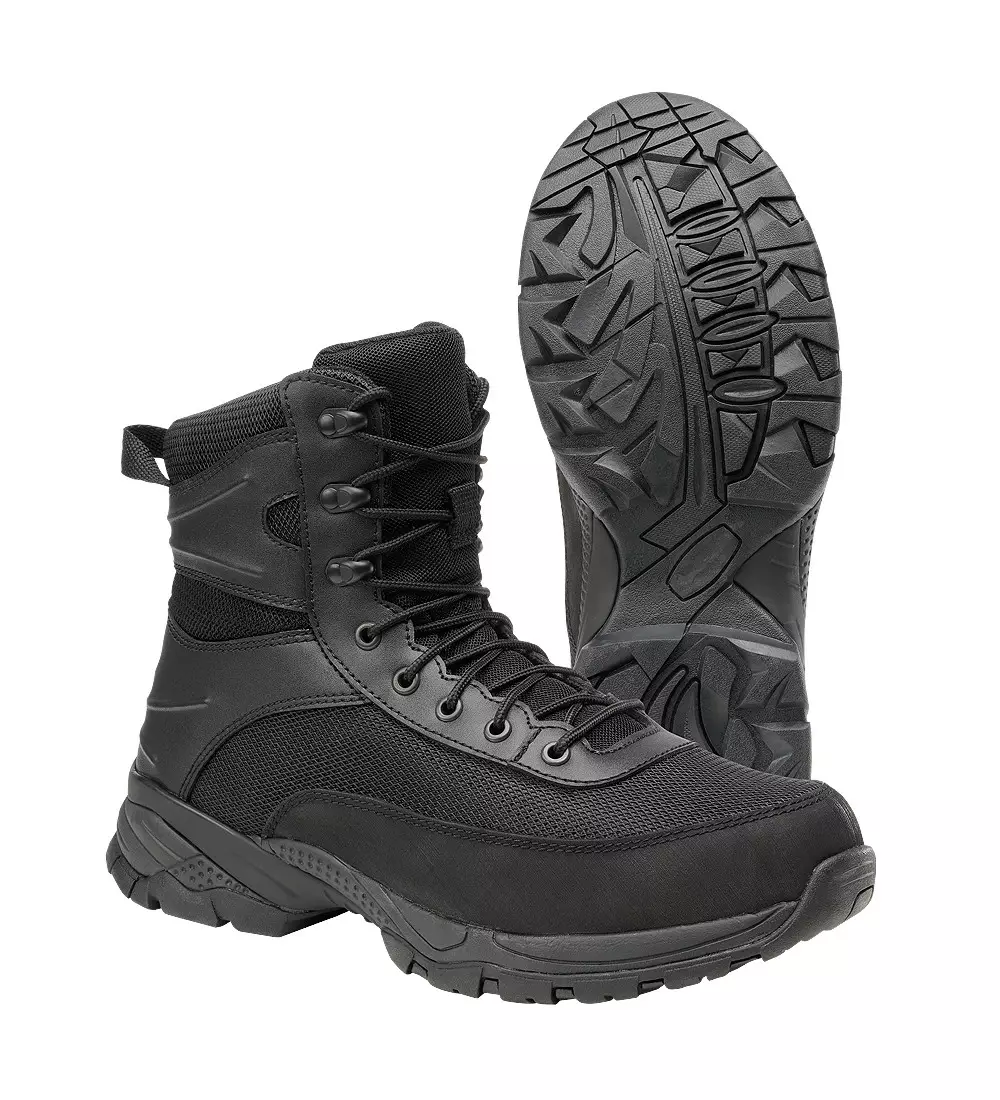 Brandit taktiset varsikengät, musta. Edulliset taktiset varsikengät vapaa-aikaan, ulkoiluun ja airsoftiin. Nämä maiharit ovat nahka ja tekstiiliyhdistelmää sekä niissä on pitävä kumipohja. Jalkineessa on EVA -välipohja, nitriilistä valmistettu pohja, joka on isku -ja tärinävaimennettu, mekaanista kulutusta ja lämpöä kestävää, liukumaton sekä öljynkestävä.