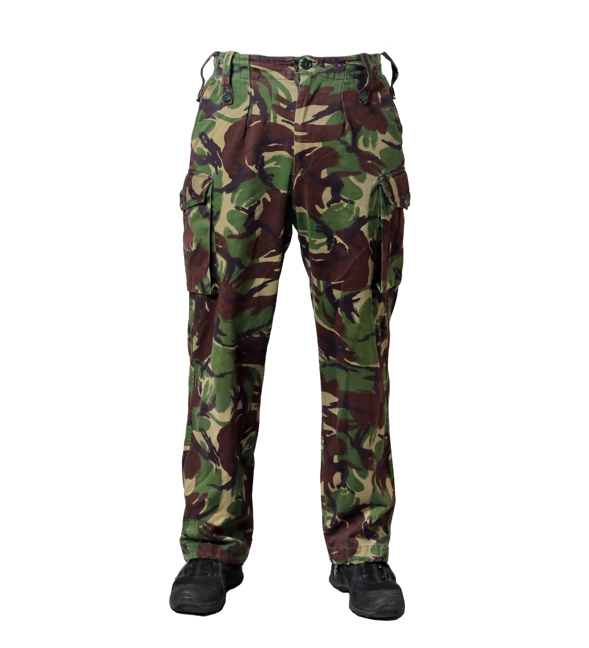 Brittiläiset DPM kuumankelinhousut, ylijäämä. Näiden temperate housujen materiaali paksumpaa kuin CS95 mallin housuissa. Erona myös esimerkiksi taskujen malli ja napit, jotka tässä housussa ovat tavalliset Kanada -nappien sijaan. Malli on siis vanhempi. Housut ovat valmistettu todella kovaan käyttöön, joten palvelevat vielä ylijäämänäkin varsin mallikkaasti pitkän aikaa. Vyötärön kyljissä napit, joista voit napittaa vyötäröä pienemmäksi. Sepalus sulkeutuu vetoketjulla ja varmistuu napilla. Lahkeiden suissa kiristysnyörit. Housuissa on isot sivutaskut, isoilla napeilla sulkeutuvat reisitaskut. Vyölenkit ovat niin leveät (90mm), että niissä voi käyttää vaikka taisteluvyötä. Vyötärön sisällä kulkee leveähkö kiristysnyöri, jolla saat kiristettyä housut sopivalle kireydelle ilman vyötä.
