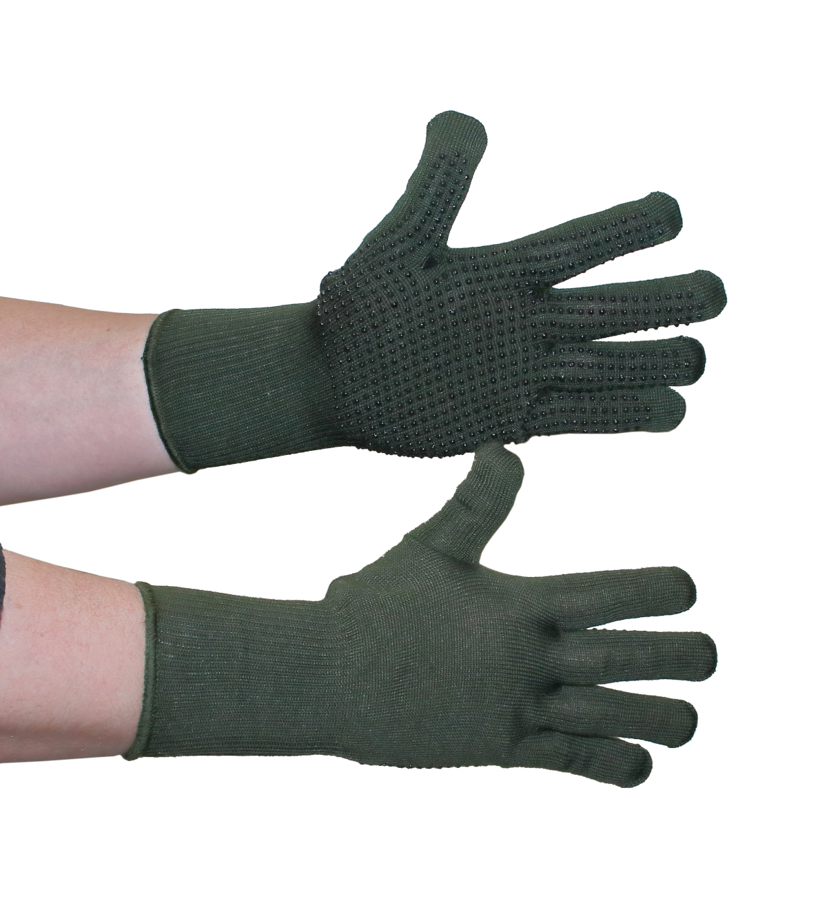 Brittien armeijan käyttämätöömät palonkestävät, joissa nappulapinta. Näitä sormikkaita voit käyttää vaikka nuotiopannujen käsittelyssä tai missä vaan vähän likaisemmassa puuhassa. Näppylät antavat lisää pitoa.