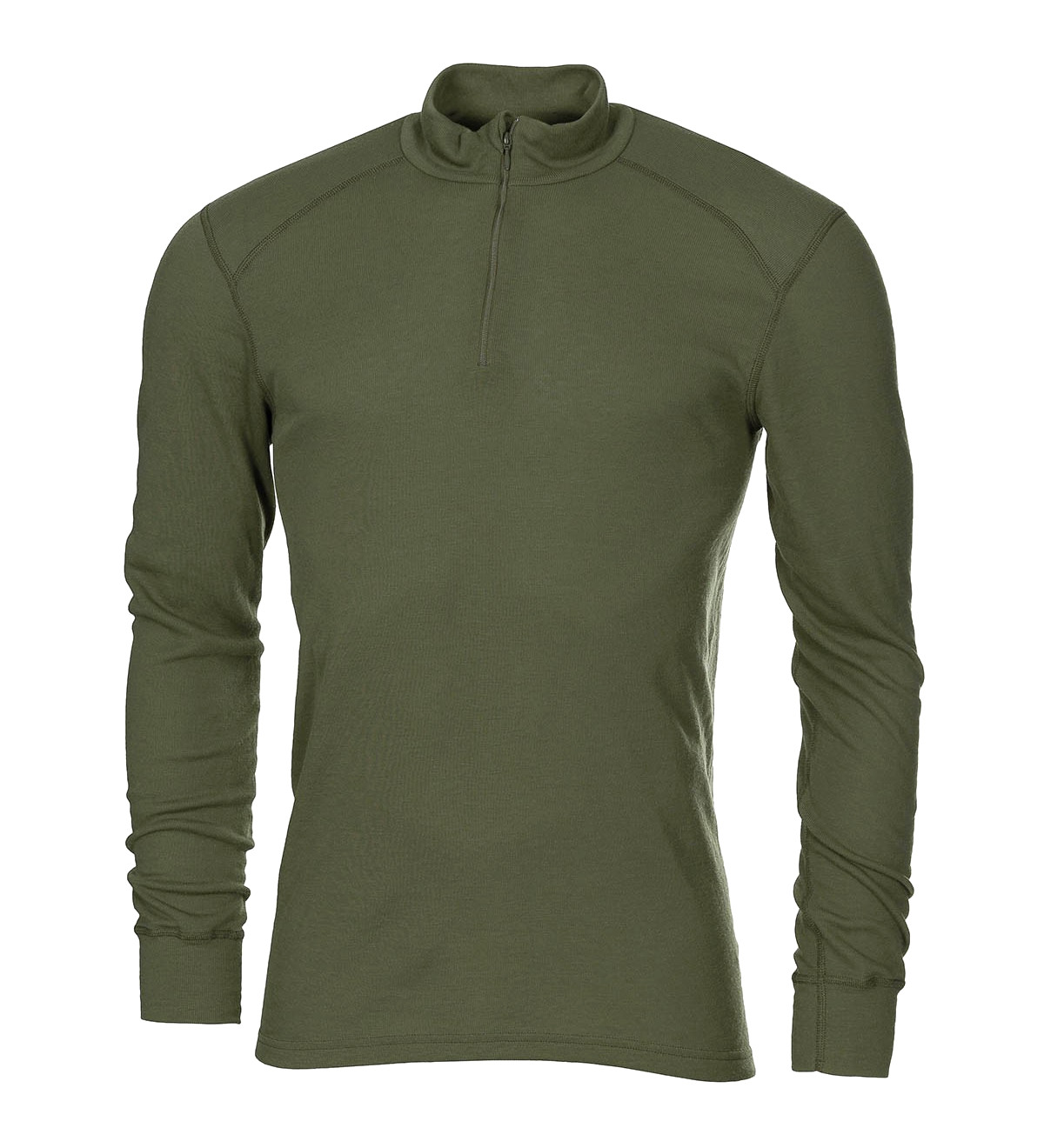Hollantilainen Odlo pitkähihainen paita kaulusvetoketjulla, oliivinvihreä, ylijäämä