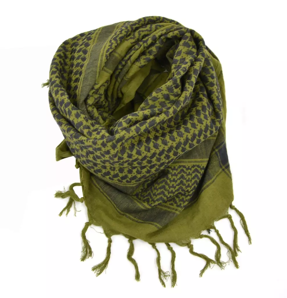 Hollantilainen shemagh arabihuivi, mustavihreä, ylijäämä. Hollannin armeijan käytetty shemagh arabihuivi käy ympärivuotiseen käyttöön. Shemaghia on käytetty kautta aikojen kuumissa aavikko-olosuhteissa ns. Arabihuivina. Sopii siis käytettäväksi niin kuumissa kuin viileimmissäkin olosuhteissa. Tätä huivia voit käyttää monella eri tavalla, kuten päähineenä, kaulahuivina, kantositeenä, naamiointiin tai vaikka vetoköytenä tarpeen vaatiessa. Kuumilla keleillä voit kastella shemaghin kylmällä vedellä ja asettaa päähäsi viilentämään tunteita. Erittäin monikäyttöinen huivi kaikenlaiseen resuamiseen.