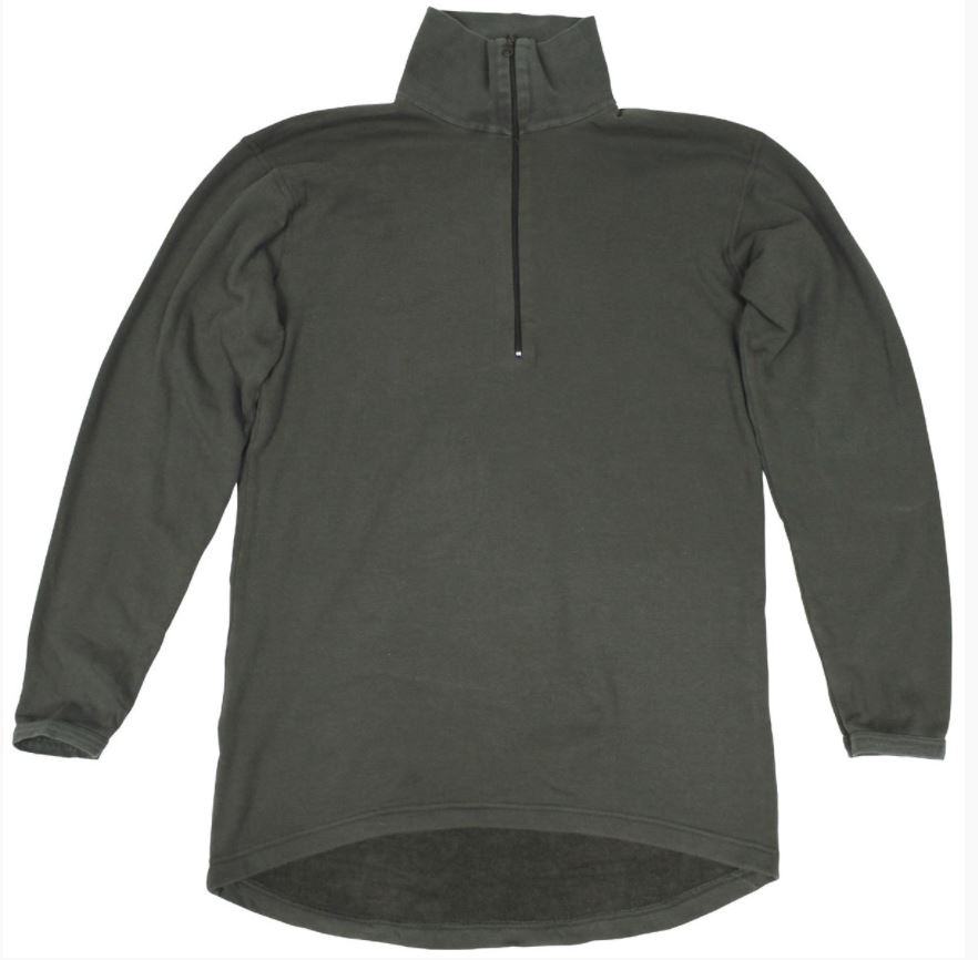 Itävallan armeijan poolopaita, ylijäämä. Mukava, lämmin pääli/välikerroksen pitkähihainen trikoopaita. Kankaan sisäpuoli on ilmavaa froteekarvaa, joka on erittäin miellyttävä ylläpitää. Kaulus sulkeutuu vetoketjulla ja hihoissa kapea resori. Parhaimmillaan paita on kerrospukeutumisen aluspaitana eli laita tämän paidan alle joku aluspaita tai verkkopaita ja tämä päälle.