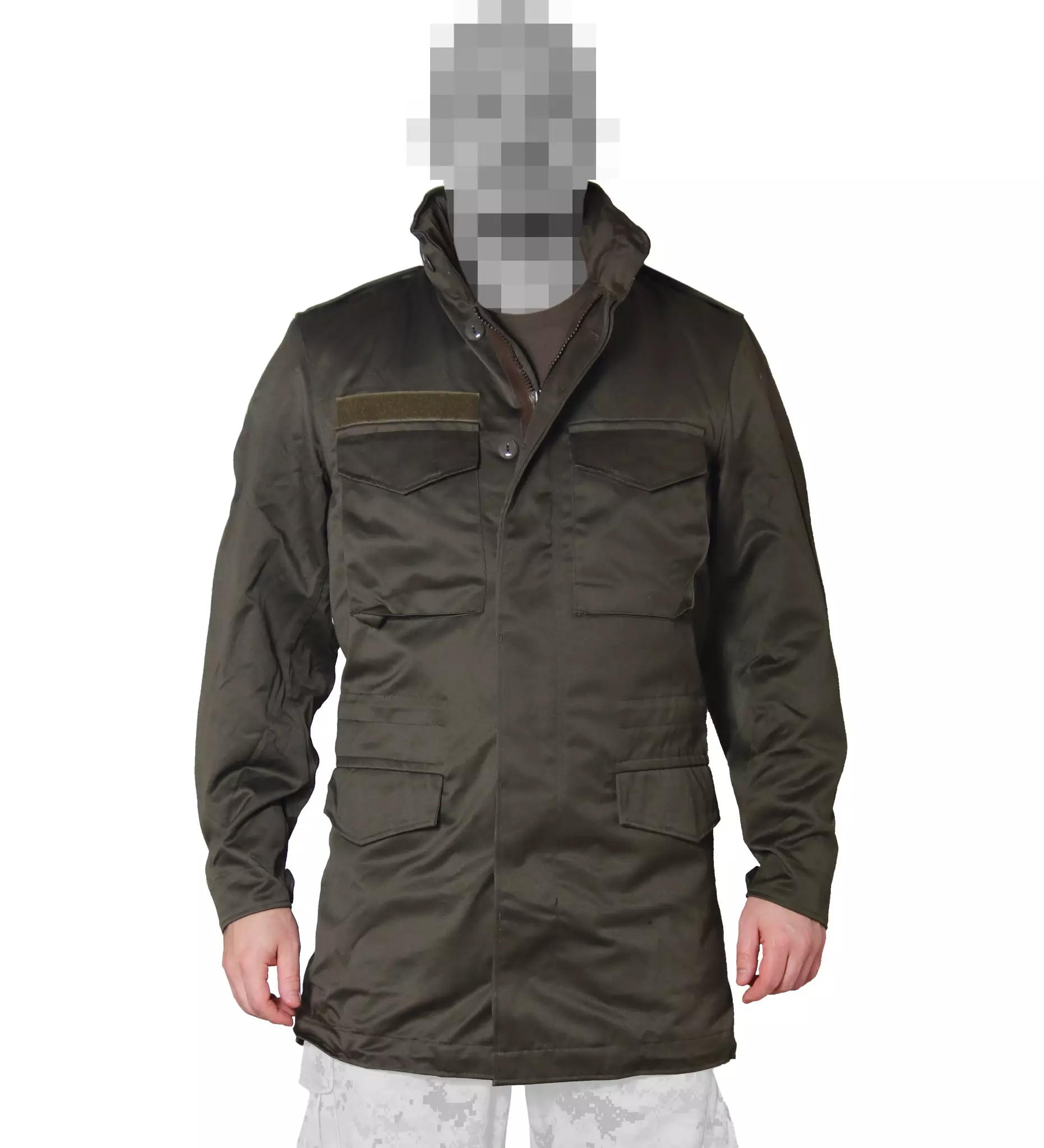 Itävaltalainen Anzug 03 kenttäparka, oliivinvihreä, ylijäämä. Tämä takki pohjautuu jenkkiarmeijan M65 takkiin, joten takista löytyy samoja ominaisuuksia. Erittäin hyvä sekoitekankaasta valmistettu maiharitakkityylinen popu (polyesteri-puuvilla) parkatakki. Edessä nappisulkeiset etutaskut sekä rintataskut ja takin sisäpuolella nappisulkeinen povitasku . Vyötäröstä sekä helmasta löytyy nyörikiristys. Hihansuut saa napeilla kiristettyä sopivaan kireyteensä. Olkapäissä ns. hainevät, jotka antavat liikkuvuutta käsille ja hartioille. Takki sulkeutuu vetoketjulla, jonka päällä nappisulkeinen sulkuläppä. Kauluksessa vetoketjuan alla huppu kiristysnyörillä. Kaulus ulottuu tarpeeksi korkealle, joten suojaa hyvin viimalta. Kauluksen saa suljettua edestä napilla. Kangas on tiheätä ja paksua sekoitekangasta, joten kestää pitkään. Rinnassa velcrotarrapaikka sekä arvomerkkipaikka pystyssä. Tämä on loistava loppukesän, syksyn ja kevään takki. Sopii kyllä Suomen viileisiin kesiin sekä leutoihin talviinkin. Alle voi laittaa lisää vaatetta tai ottaa tarpeen mukaan poiskin.