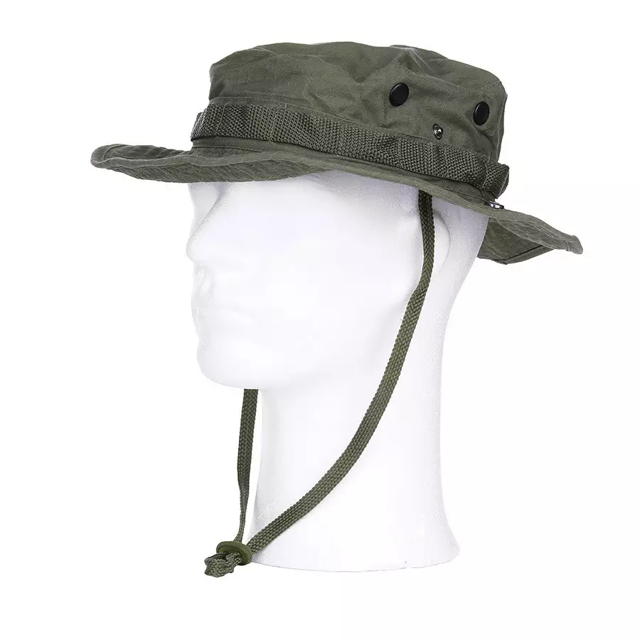 Lierihattu US boonie muotoiltavalla rautalangalla, ranger green. Sekoitekankainen lierihattu, jossa pienet pyöreät ilmanvaihtoventtiilit ja lieren juuressa kujasto, johon voit asentaa erilaisia materiaaleja, kuten oksia. Voit myös laittaa kujastoon roikkumaan lipat ja vieheet, jollon kulkevat kalastuksessa näppärästi mukana. Tähän lierihattuun sopii mainiosti original US hyttysverkko. Lieren kehällä kulkee rautalanka, joten saat lieren muotoiltua mieleiseksi