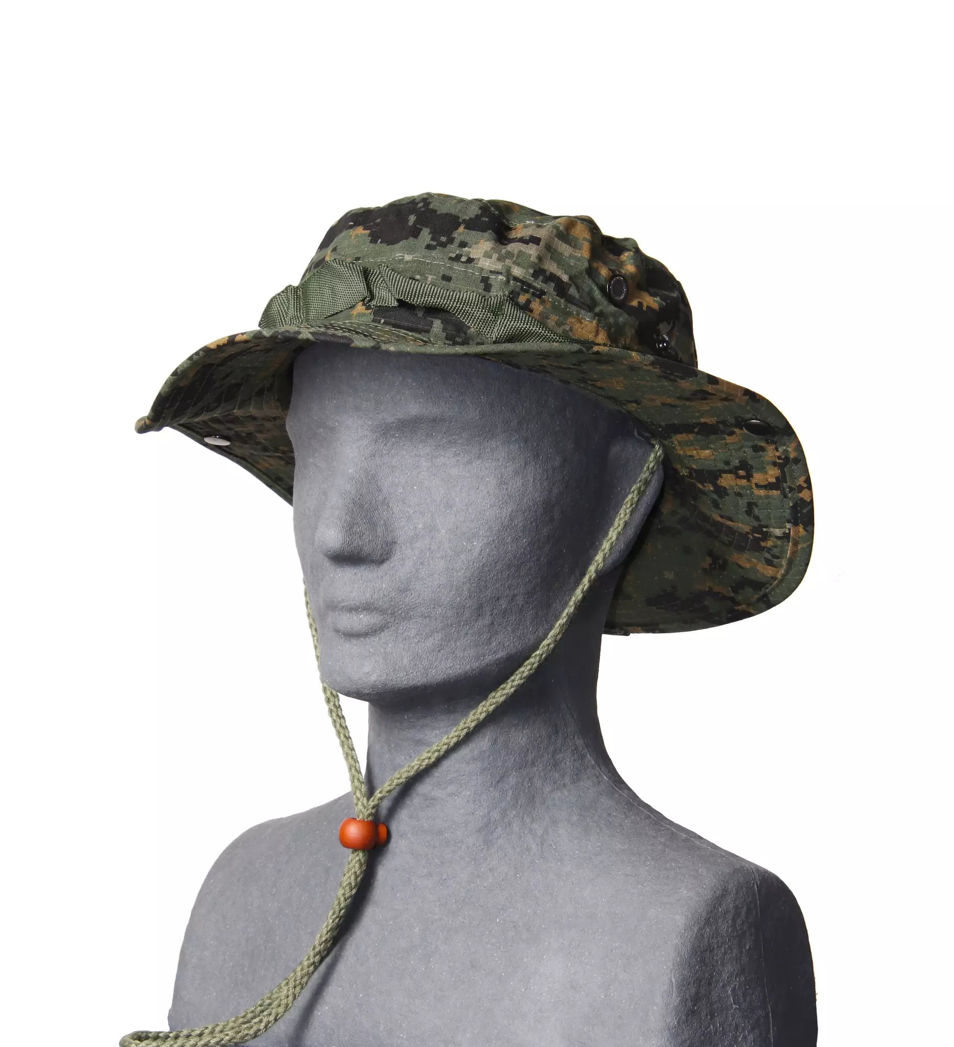 Lierihattu US Boonie, ripstop Digital Woodland. Ripstop -kankainen lierihattu, jossa pienet pyöreät ilmanvaihtoventtiilit ja lieren juuressa kujasto, johon voit asentaa erilaisia materiaaleja, kuten oksia. Voit myös laittaa kujastoon roikkumaan lipat ja vieheet, jollon kulkevat kalastuksessa näppärästi mukana. Tähän lierihattuun sopii mainiosti original US hyttysverkko.
