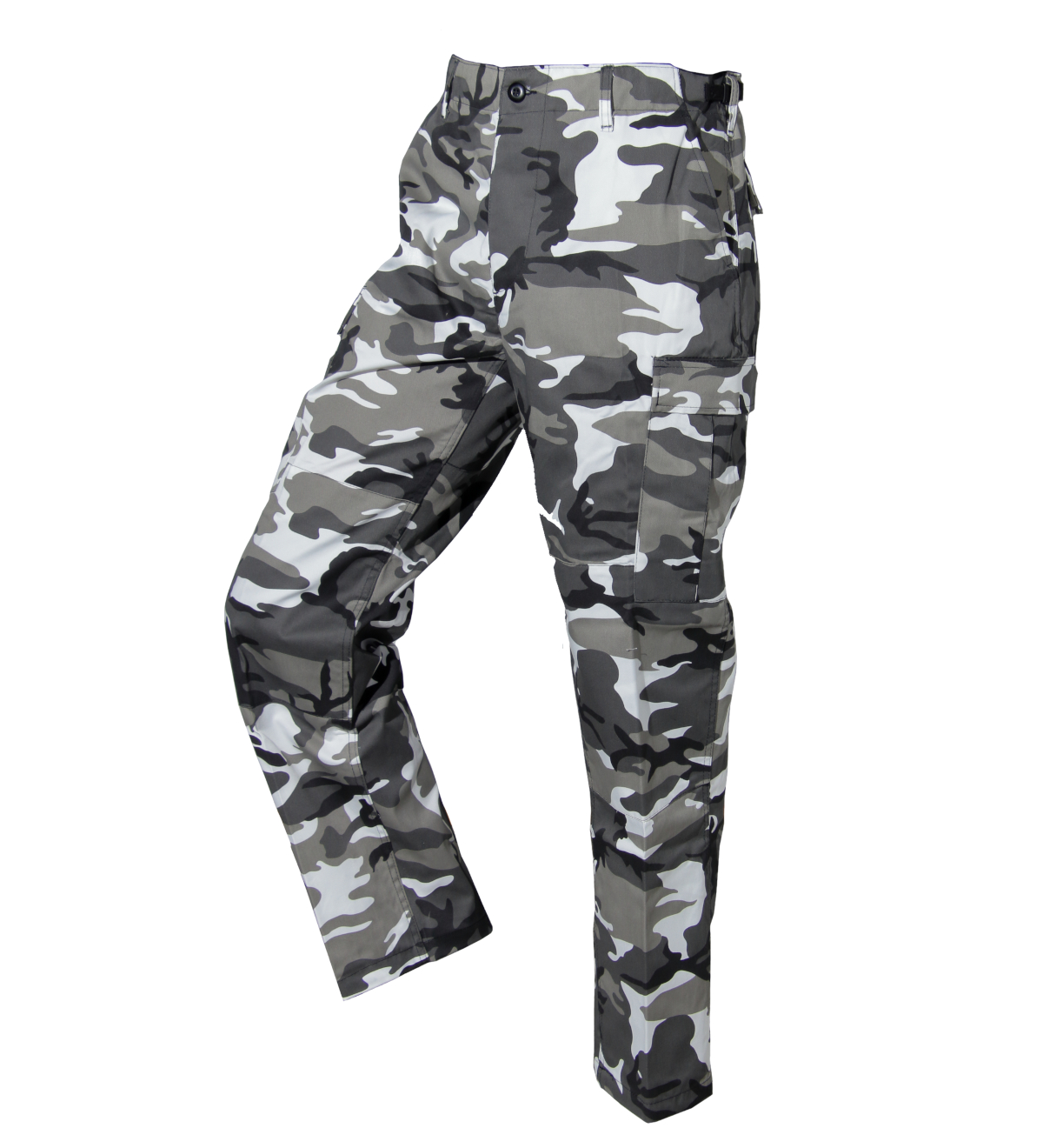 Reisitaskuhousut BDU, Urban Metro. Mil-Tec BDU housut ovat hyvin kulutusta kestävät housut, joissa on kuusi taskua: kaksi kylkitaskua vyötäröllä, kaksi takataskua sekä kaksi isoa reisitaskua. Taka- ja reisitaskuissa napeilla sulkeutuvat taskut. Sepalus sulkeutuu myös napeilla. Lahkeensuissa olevilla kiristysnauhoilla voit kiristää lahkeet maiharin päälle tai sisälle sopivaksi. Lisäksi housut ovat vahvistettu kuluvista kohdista kuten polvista ja takapuolesta kaksinkertaisella kankaalla.