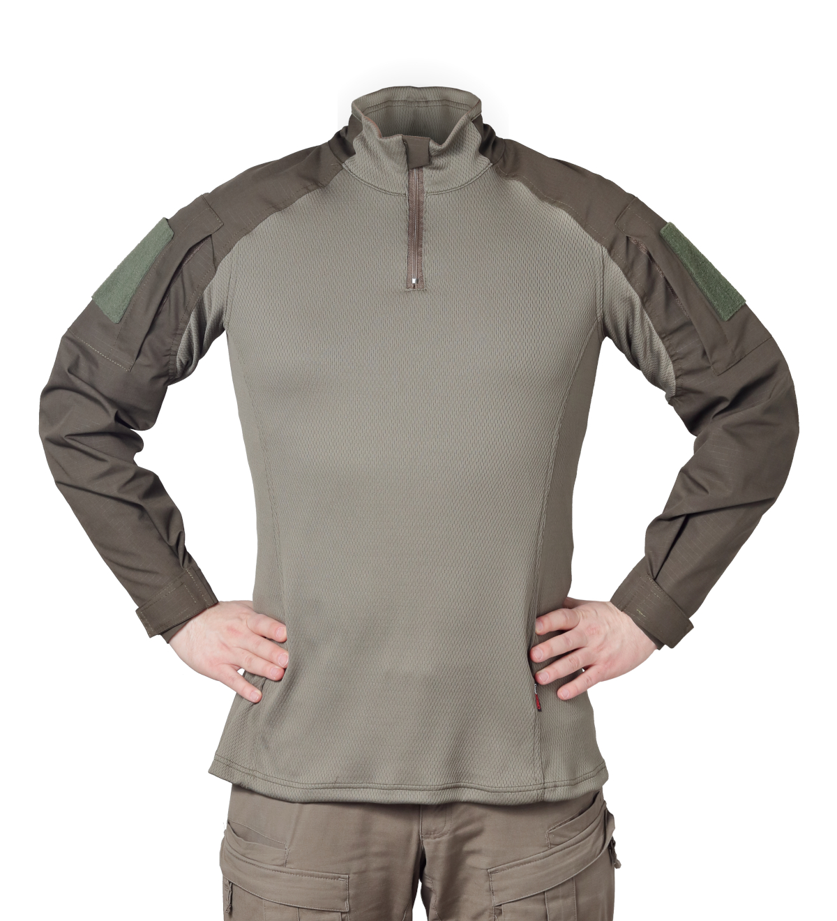 Neuloksen rakenne on samaa mitä Puolustusvoimat käyttää helleasun aluspaidoissa. Neulos on erittäin hengittävä ja viileä kuumallakin kelillä. Voisi jopa sanoa että se on lisätyn hopeaionin vuoksi tämä on paranneltu Mil-Spec. Erinomainen valinta pidettäväksi suojaliivien alla. Kauluksen korkeutta on lisätty 1,5 cm, joten se suojaa kaulaa paremmin. Kauluksen sisäpinnalla ja reunusnahana on käytetty samaa Coolmax-Fresh® -neulosta kuin mitä on vartalo-osassa. Kaulus ja reuna tuntuu pehmeältä ihoa vasten. Vetoketjun yläosaa peittämässä on vetoketjulista joka estää vetoketju päätä hankaamasta kaulaa. Hihansuissa on velcro-kiinnitys jota voi sääolosuhteista riippuen pitää sopivalla kireydellä. Raglan hihat.