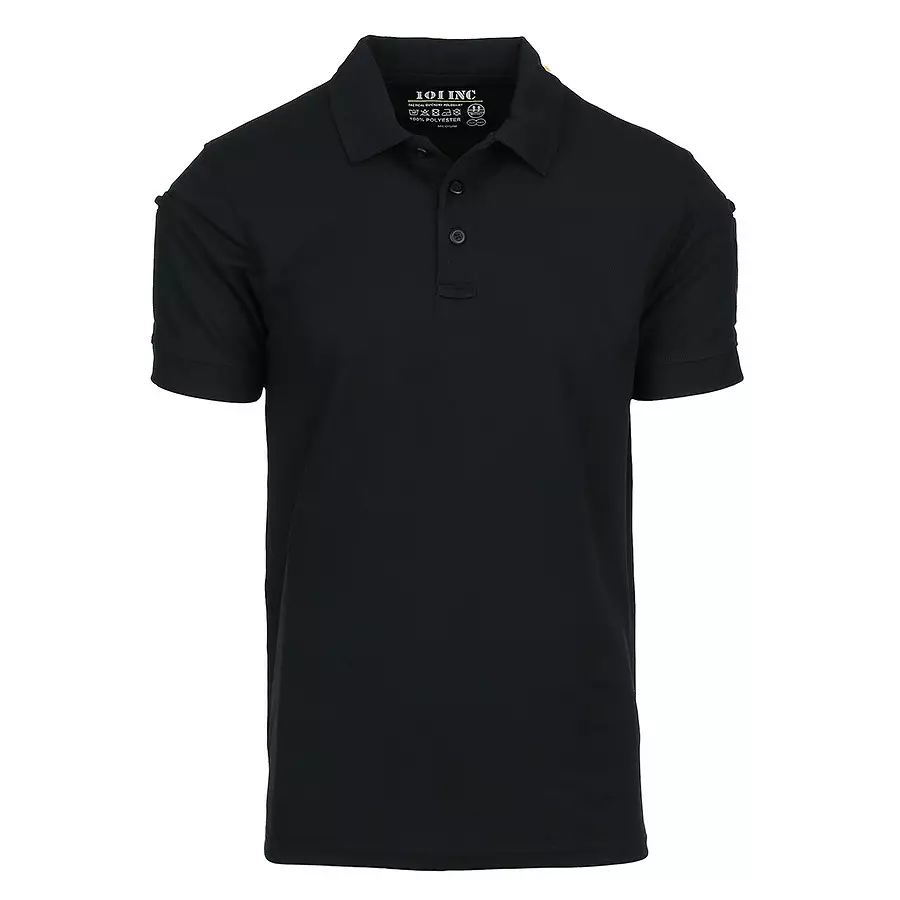 Taktinen Pikeepaita, Quick Dry, musta. Siistimpi taktinen pikeepaita, joka kuivuu nopeasti. Rinnassa kolme nappia, joilla voit peittää rintakarvat. Nappirivin alla lenkki, johon voit ripustaa vaikka aurinkolasit. Molemmissa hihoissa kynäpaikka ja vasemmassa olkapäässä velcrotarrapörrö merkkejä varten. Quick Dry -materiaali kuivuu nopeasti ja siirtää kosteutta iholta.