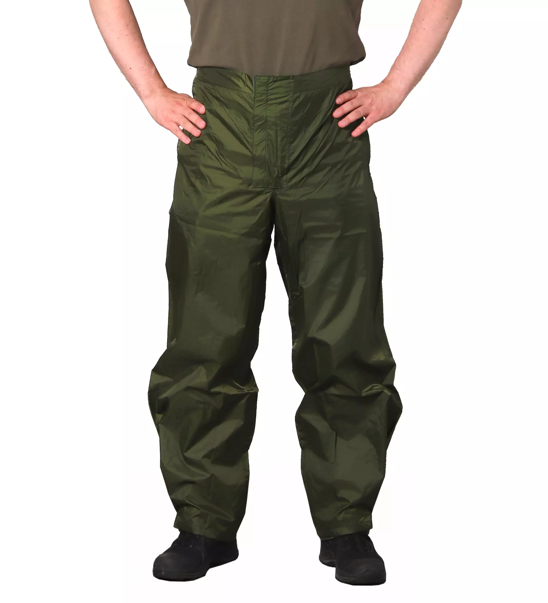 Tanskalaiset sadeasun housut, vihreä, ylijäämä. Aitoja Tanskan armeijan kevyitä sadehousuja vihreässä värissä. Nämä ovat 80 -luvun lopun Tanskan armeijan sadehousua teipaituilla saumoilla. Nooh koska ovat maanneet jossain varastoissa vuosikymmenet, niin luonnollisesti kaikki saumat eivät varmastikkaan ole täysin vedenpitäviä ja siksi nämä ovat halpoja. Housujen lahkeissa ainakin suurimmassa osassa on velcrotarrakiristys ja vyötäröltä löytyy kuminauha, joka on vähän jo antanut periksi joissakin yksilöissä sekä osassa vielä joko nappi tai velcrotarrakiristys vyötärön kiristämiseen. Tästä hyvät kurahousut vaikka hiekkalaatikolle.