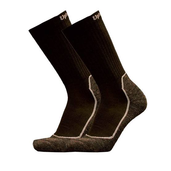 UphillSport Recon taktiset sukat nelikerroksisella rakenteella. Recon sukka on erittäin monikäyttöinen sukka vaativaan käyttöön. Ympäri vuorokauden käyttöä vaativissa olosuhteissa sukan pitää olla samalla lämmin, hengittävä ja viilentävä ollen pehmeä ja mukava koko käytön ajan. Vaativat käyttöominaisuudet sukkaan saadaan monikerrosrakenteella yhdistämällä oikeita materiaaleja. Merinovilla lämmittää antaen ilman kulkea jalan ja jalkineen välissä. Merinovillainen froteepohja on pehmeä, vaimentaen iskuja käveltäessä. Coolmax kuitu tasaa jalan lämpötilaa ja polypropeeni siirtää tehokkaasti kosteuden iholta. Sukka on tästä huolimatta keskivahva, vaikka lämpimyydeltään on huippuluokkaa.
