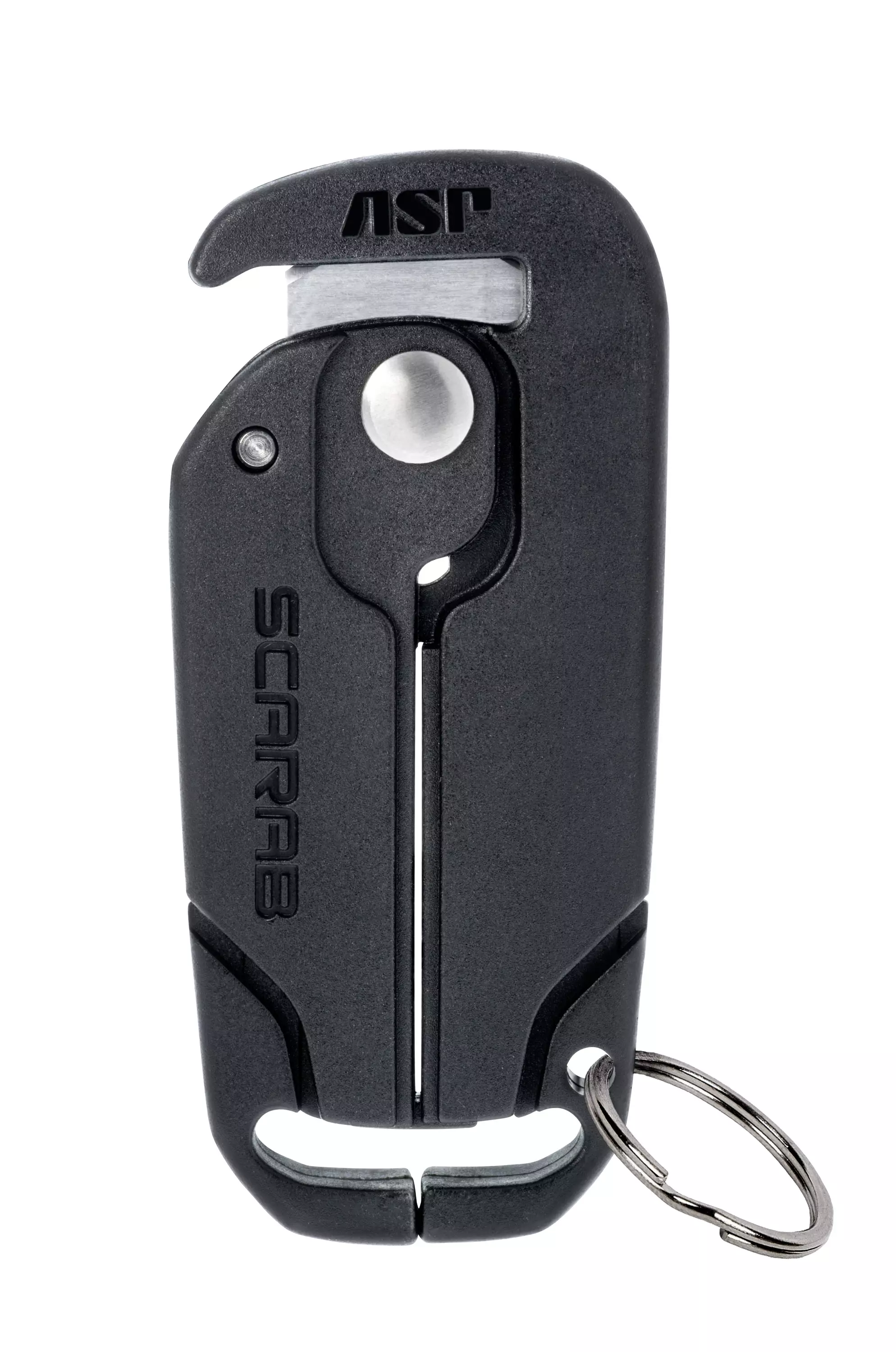 ASP Tri Fold käsisideleikkuri. Tehokas ja kompakti leikkuri, jolla saa Tri-Fold käsisiteen leikattua poikki turvallisesti vahingoittamatta asiakasta. Leikkuria ei voi käyttää vahingoittamistarkoitukseen, sillä tuotteen teräosa on suojassa vahvan muovirungon sisällä ja leikkuuväli on kapea.
