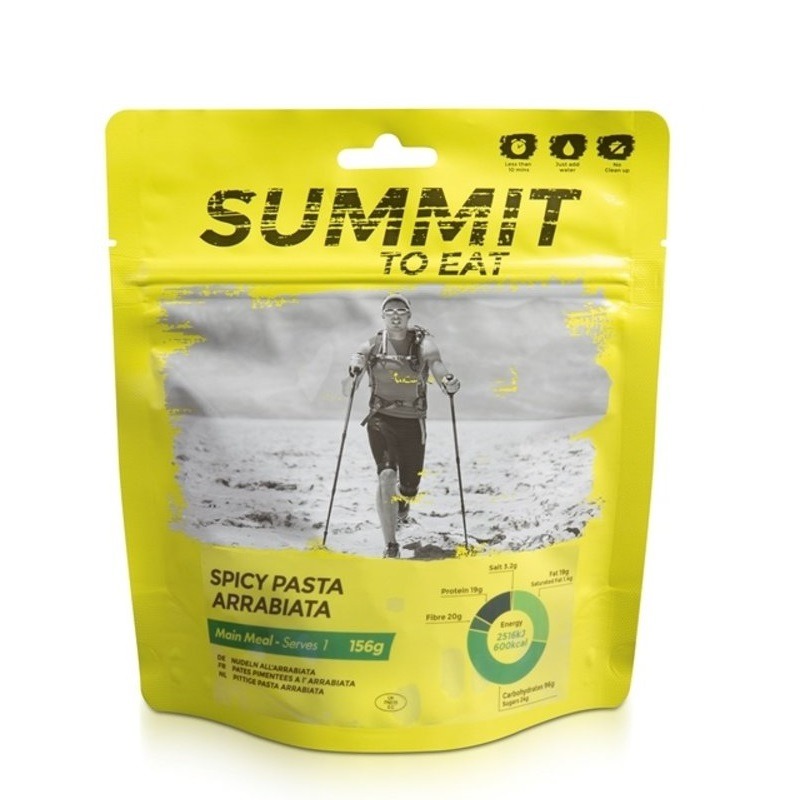Retkiruoka pastaa Arrabiata – pasta Arrabiata Summit To Eat. Pakkaskuivattu ateria – pastaa tulisessa tomaatti-valkosipulikastikkeessa