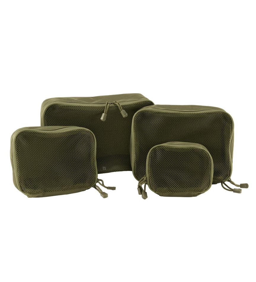 Brandit pakkaustaskut 4-osainen, oliivinvihreä. Älyttömän kätevät ja halvat organisaattoritaskut reppuihin, laukkuihin jne. Onko sukat ja alkkarit aina sekaisin laukussa? Näillä taskuilla saat ne järjestykseen. Voit vaikka yhden jättää likaisille vaatteille ja laittaa siitä suoraan pyykkiin. Sopii varsin mainiosti kaikille muillekkin tavaroille - tänne saat vaikka narut ja muut kilkkeet organisoitua. Aika kätsää. Taskut ovat valmistettu 600 denierin polyesteristä. Taskuissa vetoketjusulku ja päälipuoli on hengittävää verkkokangasta. Jos et käytä näitä voit pakata ne sisäkkäin.