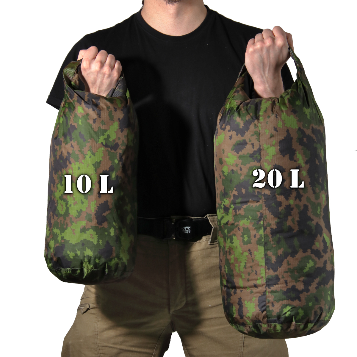 M05 kuivapussi, metsäkuvio, 10 litraa. Pakkaa kamasi kuivapusseihin että pysyvät järjestyksessä sekä kuivana. M05 maastokuvion kuivapusseissa on helppo rolltop -tyylinen pussin sulku. Eli käännät vaan pussin suuta pari pyöräytystä ja klipsillä kiinni. Kätevää, eikö?