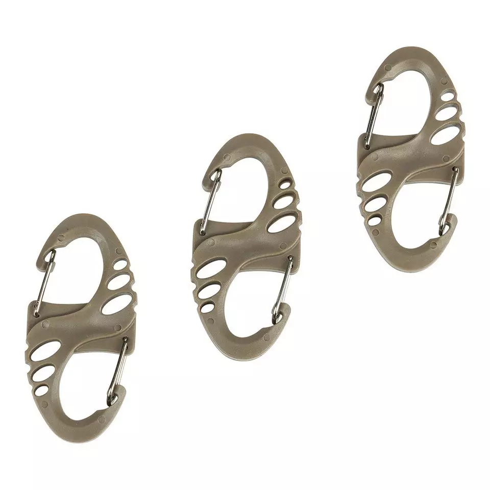 Minikarabiinihaka 3 kpl / setti, vihreä, Fosco S-mallinen haka tavaroiden roikottamiseen
