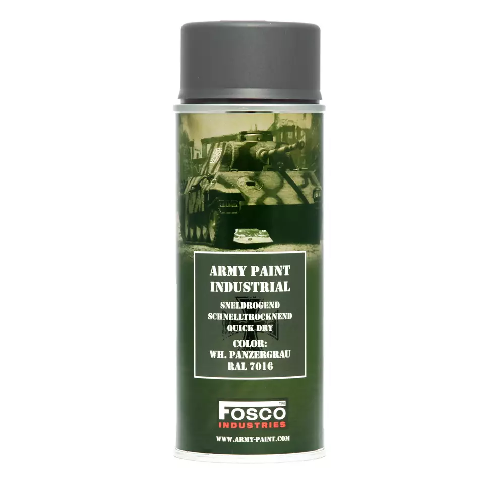 Spraymaali WH. Panzergrau. Nopeasti kuivuva spraymaali erilisiin harrastusmaalauksiin. Maali sopii aseiden, tekstiilien, työkalujen, laitteiden, ajoneuvojen maalaamiseen ja materiaali voi olla mm. metallia, puuta, muovia jne. Helppo irrottaa useimmilta pinnoilta. Ravista hyvin ennen käyttöä! Käytä suojainta ja tuuletetussa tilassa tai ulkona. Ravista hyvin ennen käyttöä!