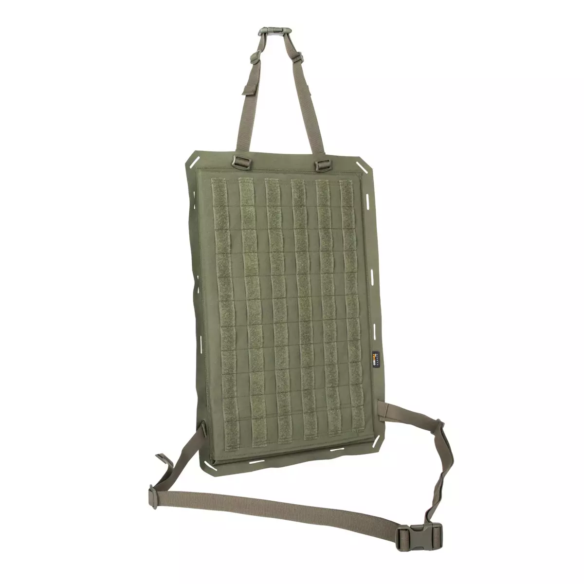 Tasmanian Tiger Modular Front Seat Panel, oliivinvihreä. MOLLE/PALS-paneeli käytettäväksi auton istuinten takana. Paneelia voidaan käyttää sekä vaaka-asennossa (takaistuin) että pystyasennossa (etuistuin). Tähän paneeliin voidaan kiinnittää erilaisia modulaariset MOLLE/PALS -taskuja ihan oman mieltymyksen mukaan. Paneeli voidaan kohtuullisen nopeasti irroittaa ja kiinnittää takaisin paikalleen.