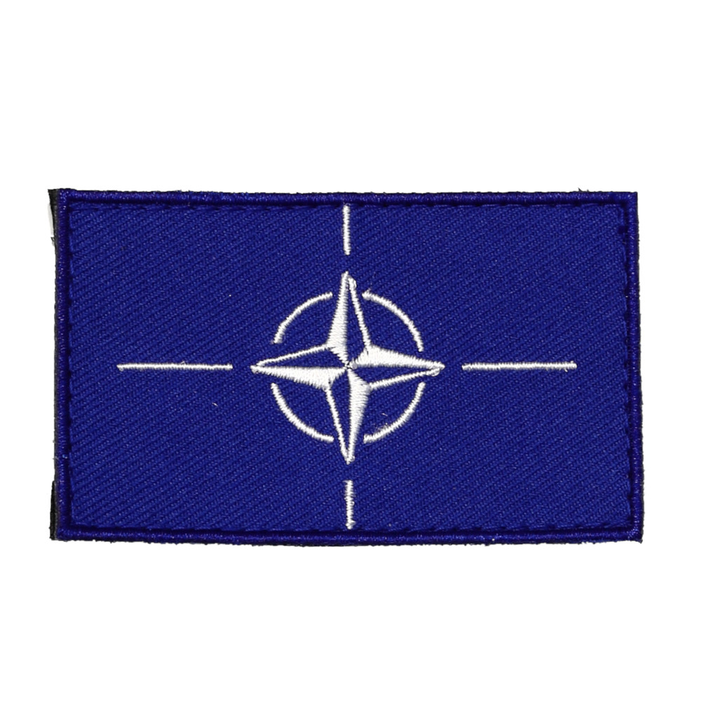 U.S.E. NATO hihalippu, täysväri Sotilasliitto NATO:n tunnuksella varustettu velcro-hihamerkki täysvärisenä.